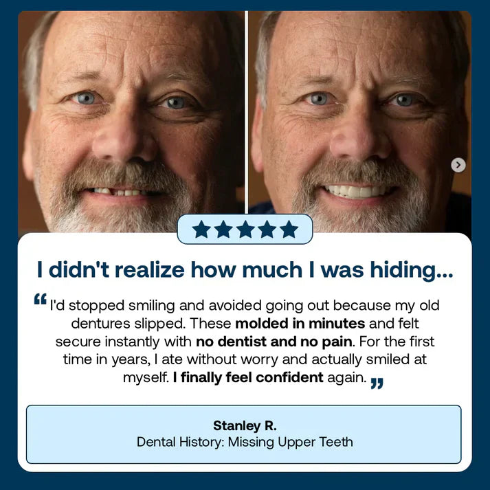 Even my friends and family can’t believe the difference. The secure fit and natural look are incredible—I don’t have to worry about slipping or discomfort. It’s like I’ve gotten my youth back, and I can enjoy life without hesitation.